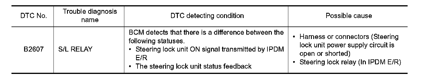 BCM requests to IPDM E/R to supply power to steering lock unit. After receiving the power, the steering lock unit transmits an ON signal to BCM.