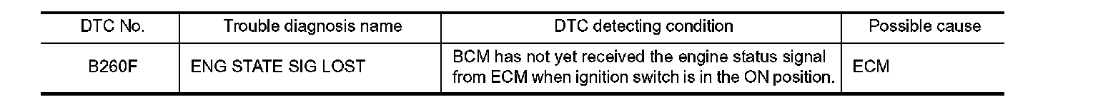 - If DTC B260F is displayed with DTC U1000, first perform the trouble diagnosis for DTC U1000. Refer to BSC.