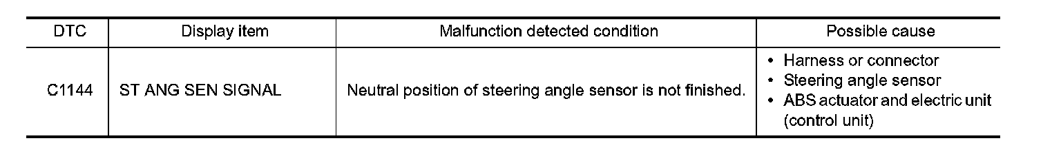 C1144 INCOMPLETE STEERING ANGLE SENSOR ADJUSTMENT