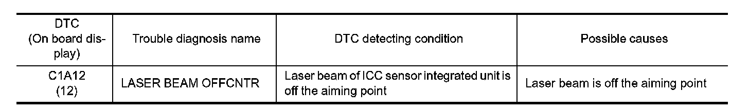 Adjust the laser beam aiming of the ICC sensor integrated unit. Refer to Description Special Repair Requirement Description, "LASER BEAM AIMING ADJUSTMENT : Description".