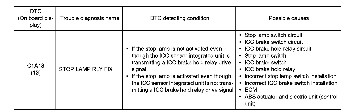 If DTC "C1A13" is detected along with DTC "U1000", first diagnose the DTC "U1000". Refer to CAN COMM Circuit CAN COMM Circuit CAN COMM Circuit CAN COMM Circuit, "DTC Logic".