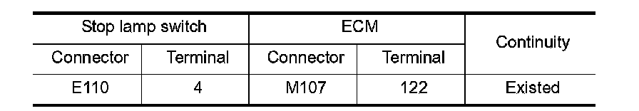 3. Check for continuity between the stop lamp switch harness connector and ECM harness connector.