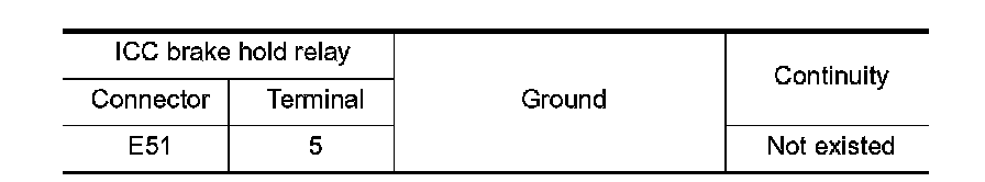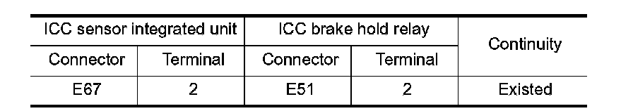 3. Check for continuity between ICC sensor integrated unit harness connector and ICC brake hold relay harness connector.