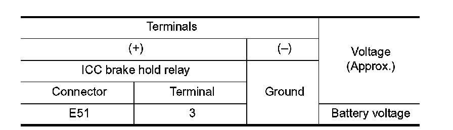 2. Check voltage between ICC brake hold relay harness connector and ground.