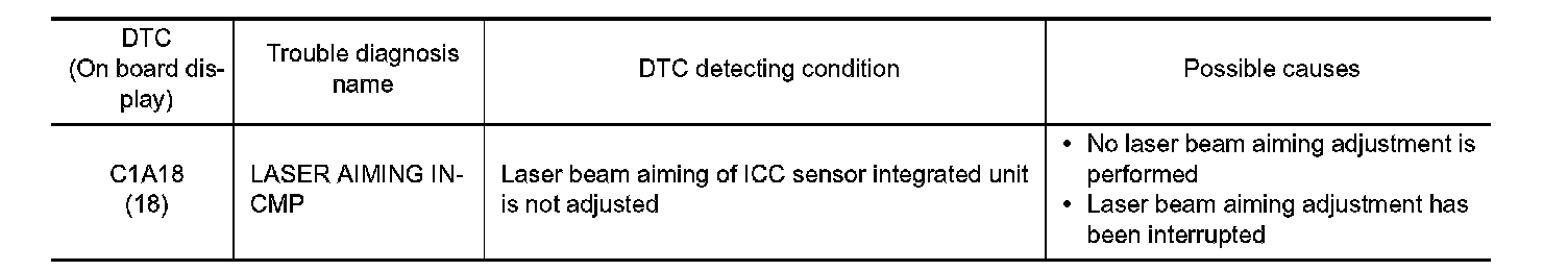 Adjust the laser beam aiming of the ICC sensor integrated unit. Refer to Description Special Repair Requirement Description, "LASER BEAM AIMING ADJUSTMENT : Description".
