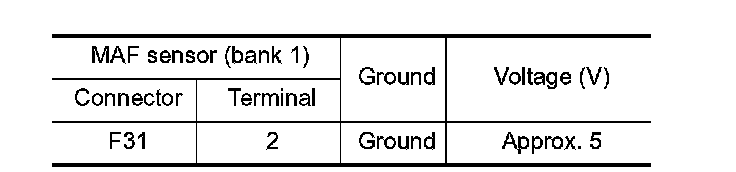3. Check the voltage between mass air flow sensor (bank 1) harness connector and ground.