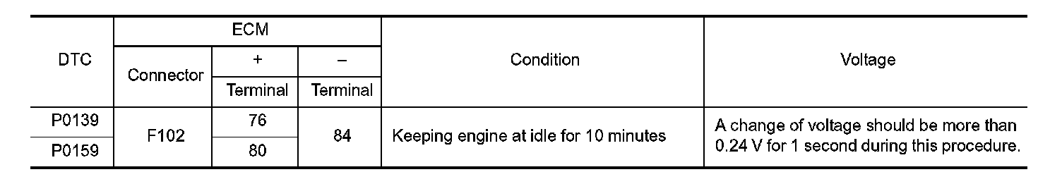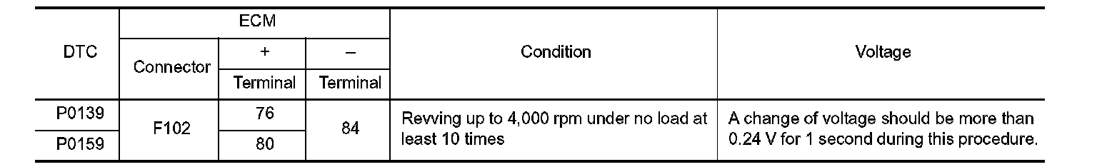 2, ECM monitors whether the switching response of the sensor's voltage is faster than specified during various driving conditions such as fuel cut.