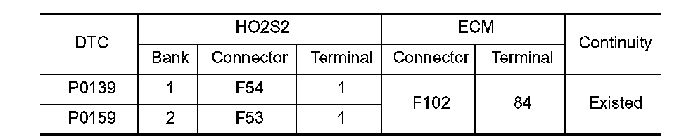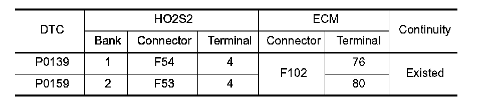 1. Check the continuity between HO2S2 harness connector and ECM harness connector.