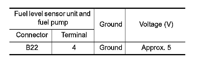 4. Check the voltage between "fuel level sensor unit and fuel pump" harness connector and ground.
