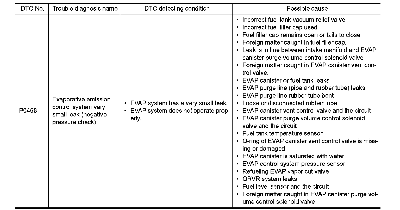 If DTC P0456 is displayed with DTC P0442, first perform the trouble diagnosis for DTC P0456.