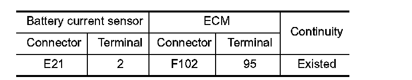 1. Check the continuity between battery current sensor harness connector and ECM harness connector.