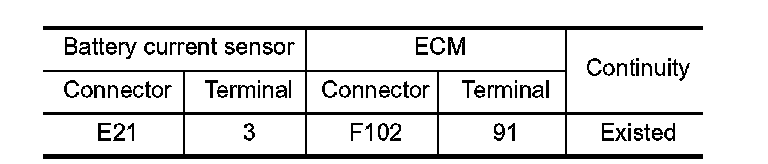 3. Check the continuity between battery current sensor harness connector and ECM harness connector.