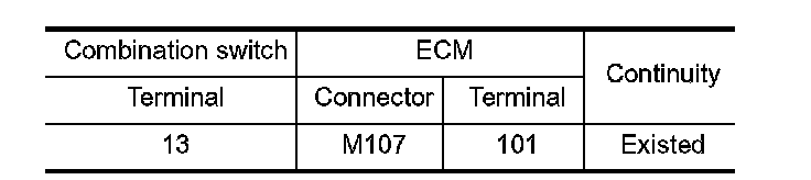 3. Check resistance between combination switch harness connector terminals under the following conditions.