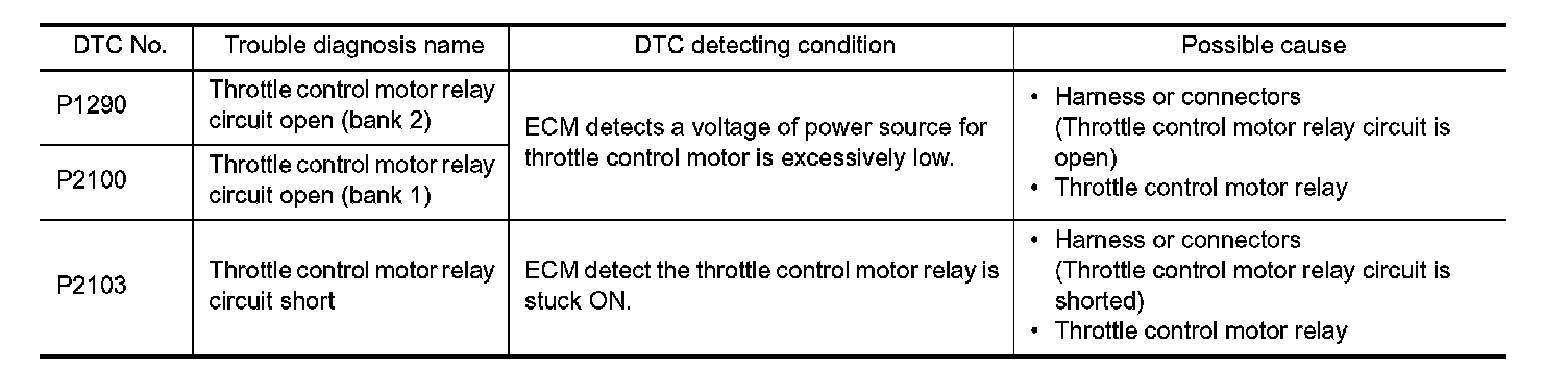P1290, P2100, P2103 THROTTLE CONTROL MOTOR RELAY