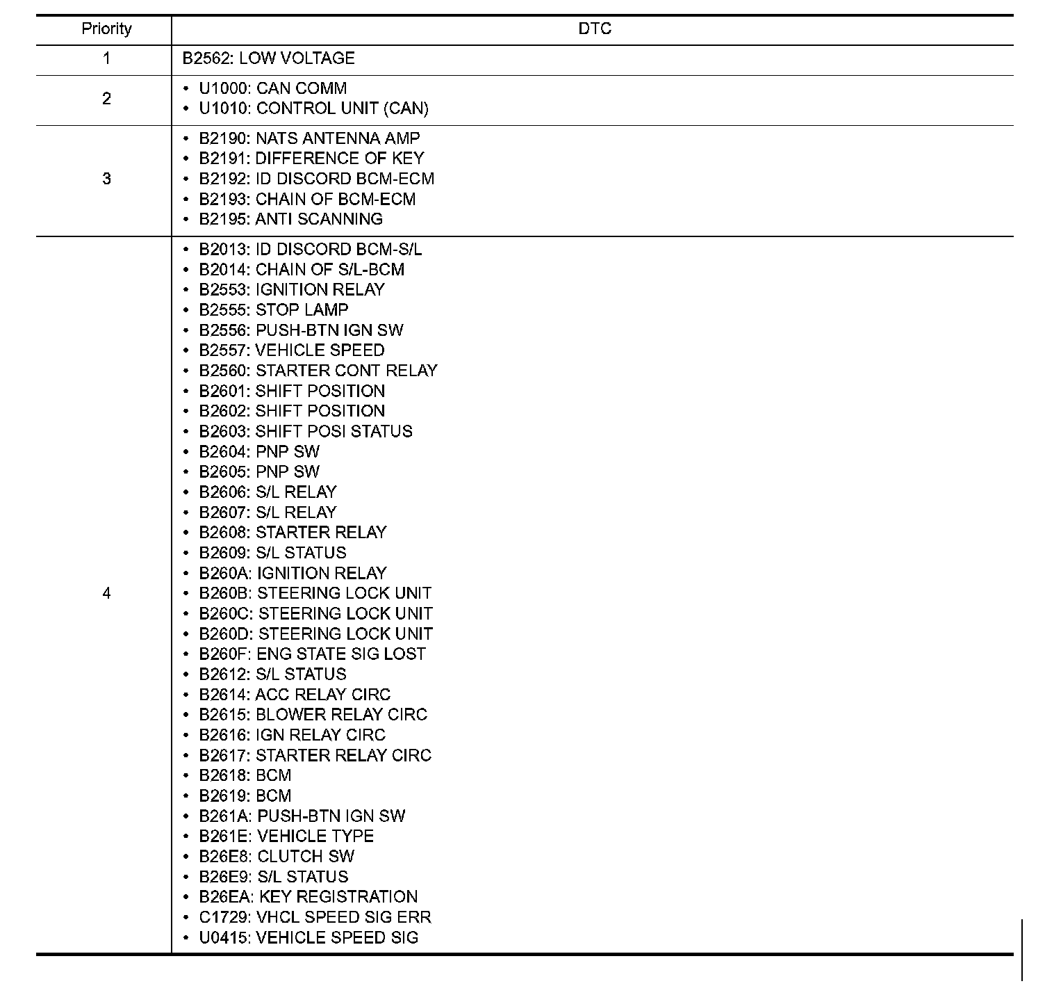 DTC Inspection Priority Chart 1-4: