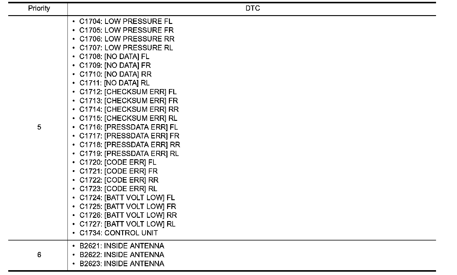 DTC Inspection Priority Chart 5-6: