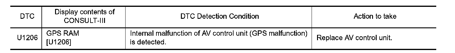 An intermittent error caused by strong radio interference may be detected unless any symptom (GPS reception error, etc.) occurs. Replace the AV control unit if the malfunction occurs constantly. Refer to BOSE Audio With Navigation.