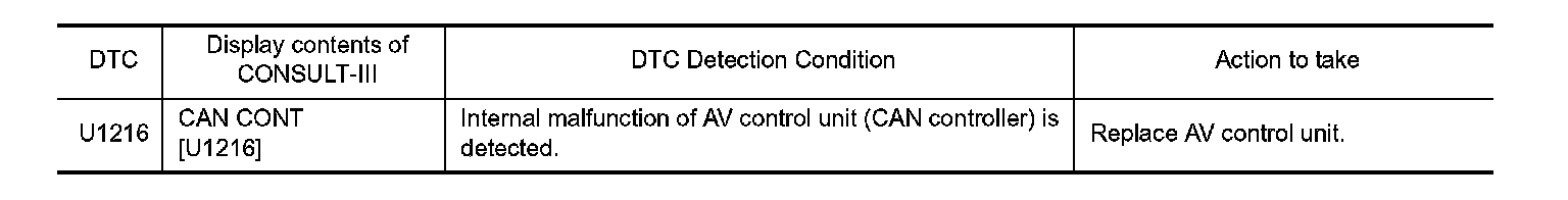 Replace the AV control unit if this DTC is displayed. Refer to