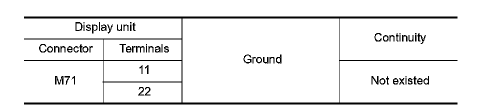 Check signal between display unit harness connector and ground.