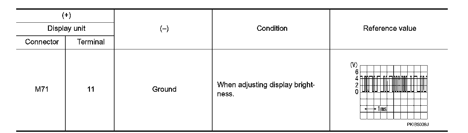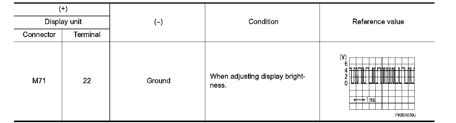 3. Check signal between display unit harness connector and ground.