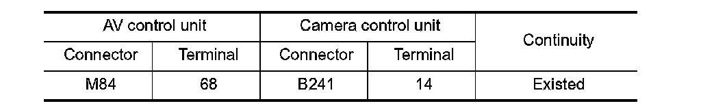 2. Check continuity between AV control unit harness connector and camera control unit harness connector.
