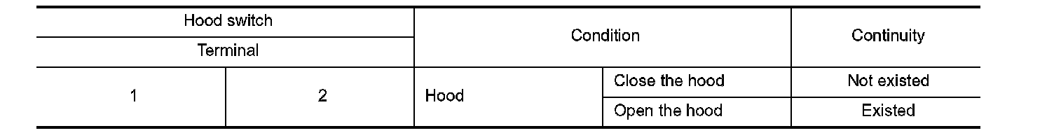 3. Check continuity between hood switch terminals.