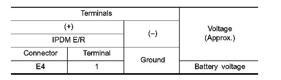 3. Check voltage between IPDM E/R harness connector and the ground.