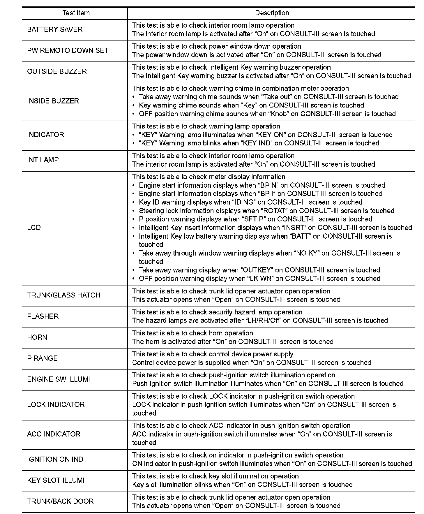 INTELLIGENT KEY : CONSULT-III Function (BCM - INTELLIGENT KEY)