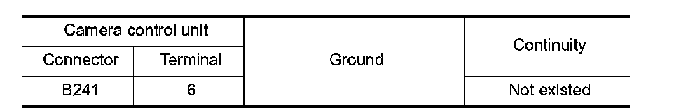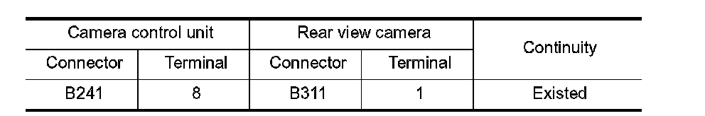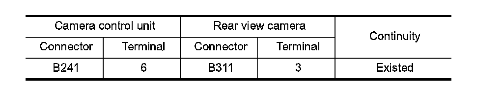 3. Check continuity between camera control unit harness connector and rear view camera harness connector.