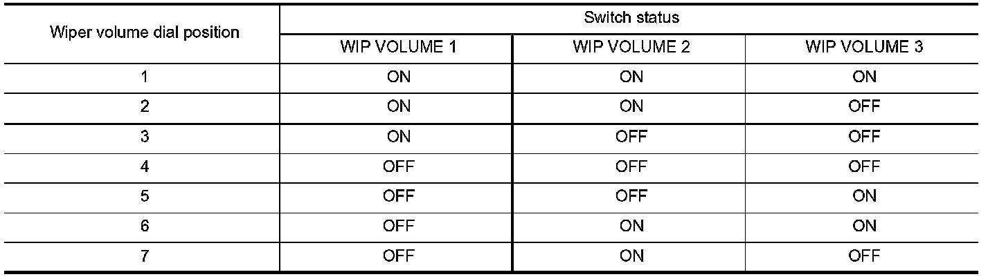 BCM judges the wiper volume dial 1 - 7 by the status of WIP VOLUME 1, 2 and 3 switches.