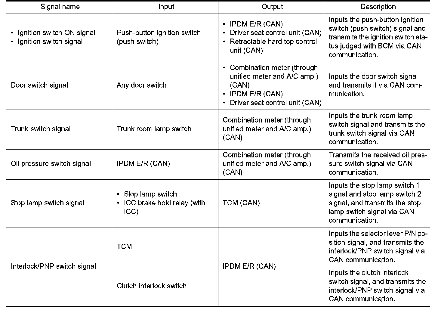 Signal transmission function list