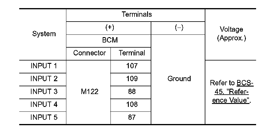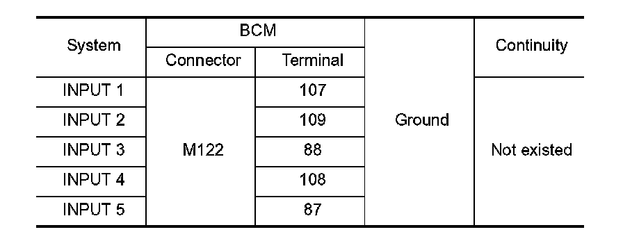 2.CHECK INPUT 1 - 5 SYSTEM CIRCUIT FOR SHORT