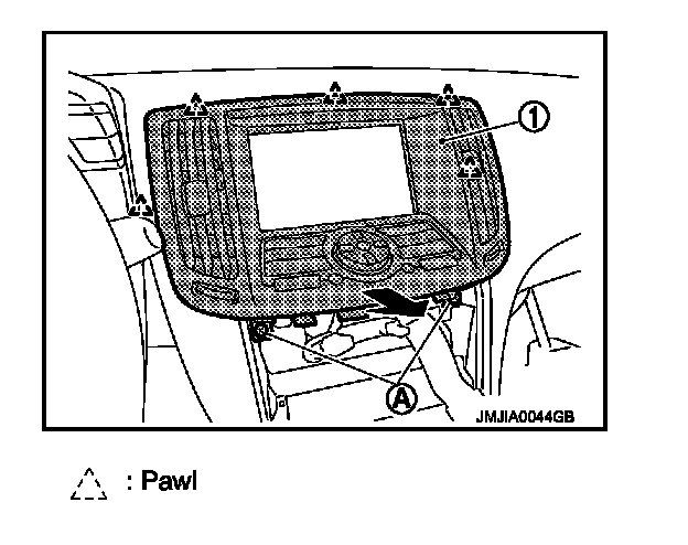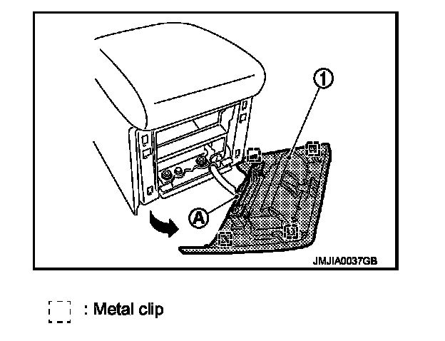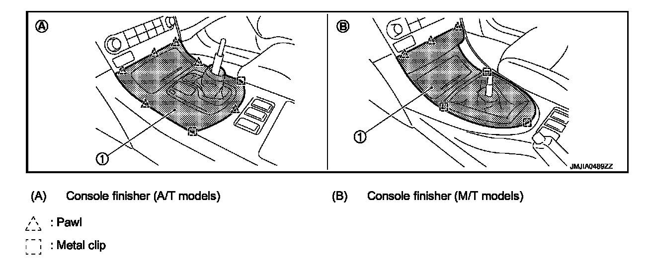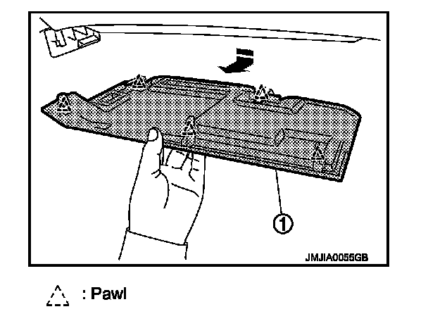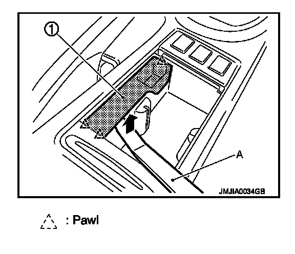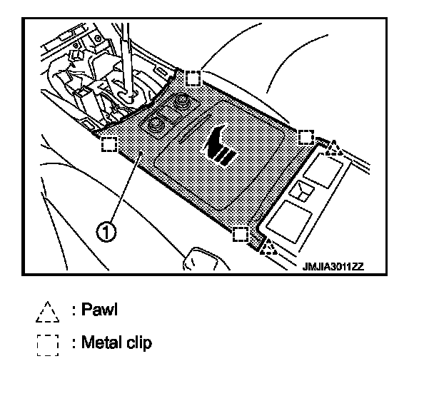 - Remove clips from rear of console finisher (1), and then remove pawl of front.