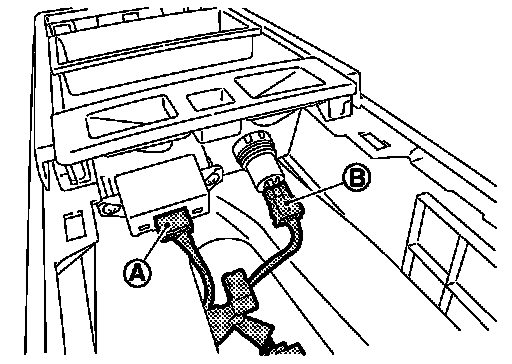 7. Disconnect auxiliary input jacks connector (A) and power socket harness connector (B) (A/T models only).