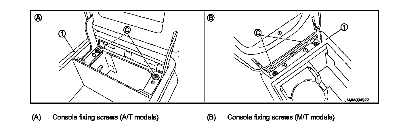 5. Remove screws (B) of center console front side with screw driver (A).