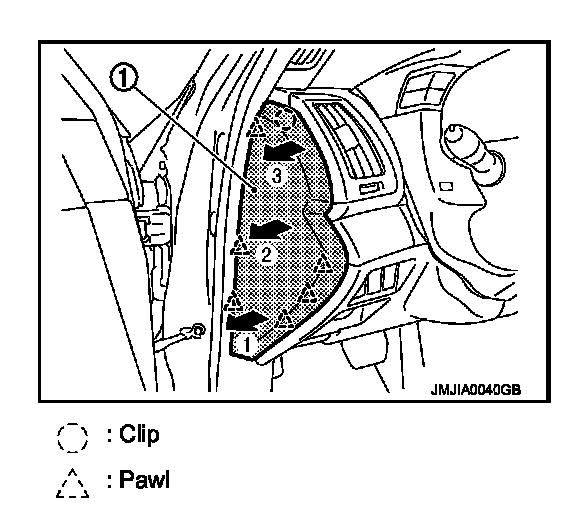 - Pull back instrument passenger lower cover (1).