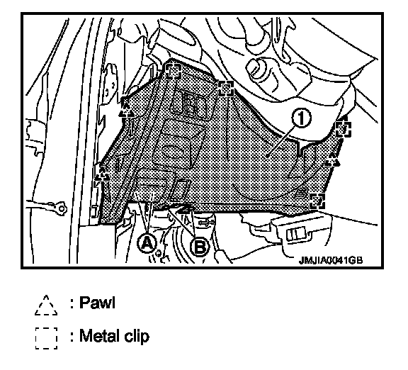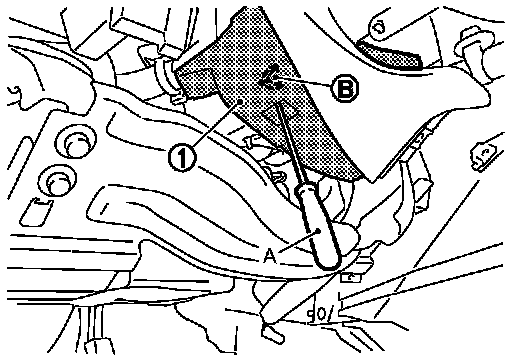 - Disengage harness cover fixing pawl (B) by using tool (A) located under the column shaft.