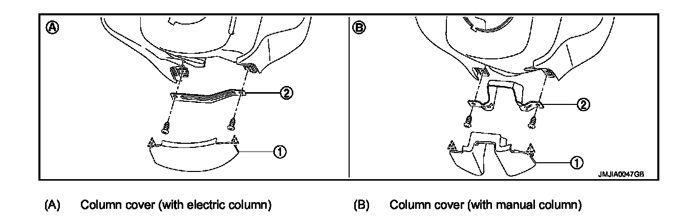 - Remove screws, and then remove steering column lower cover (7).
