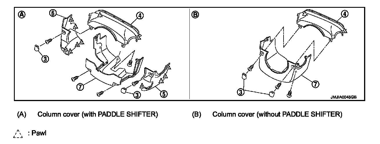 - Remove steering column side cover RH (5) (with PADDLE SHIFTER).
