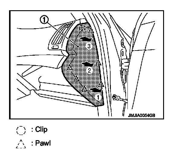 23. Remove front pillar garnish LH. Refer to Exploded View.
