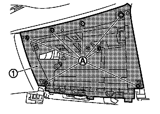 - Remove knee protector mounting bolts (A) with power tool, and then remove knee protector (1).