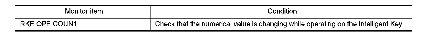 Check ("RKE OPE COUN1") in BCM "Data Monitor" mode using CONSULT-III.