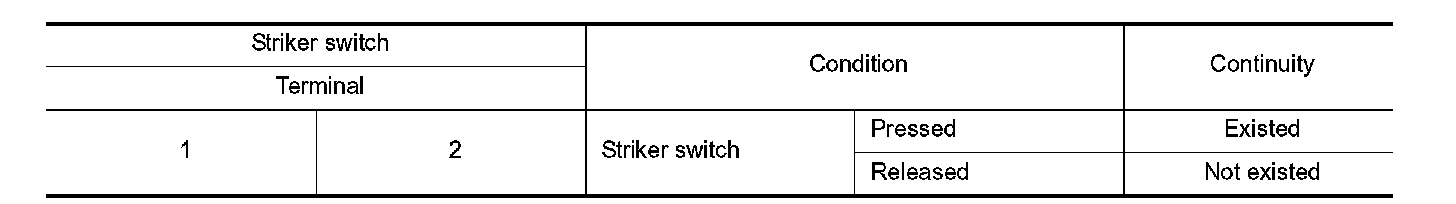 3. Check continuity between striker switch terminals.