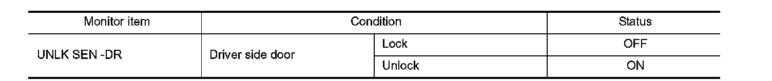 Check ("UNLK SEN -DR") in BCM "Data Monitor" mode using CONSULT-III.