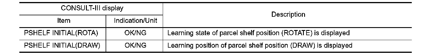 The retractable hard top control unit records the following vehicle condition at the time a particular DTC is detected, and displays on CONSULT-III.
