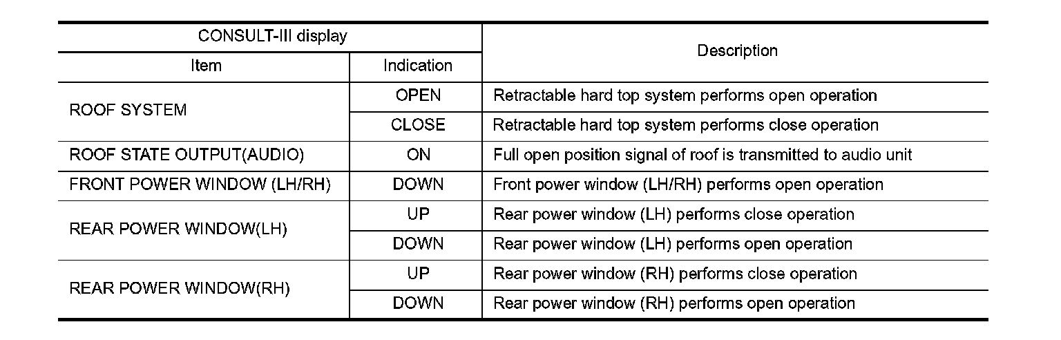 CONSULT-III performs the following functions via CAN communication with retractable hard top control unit.