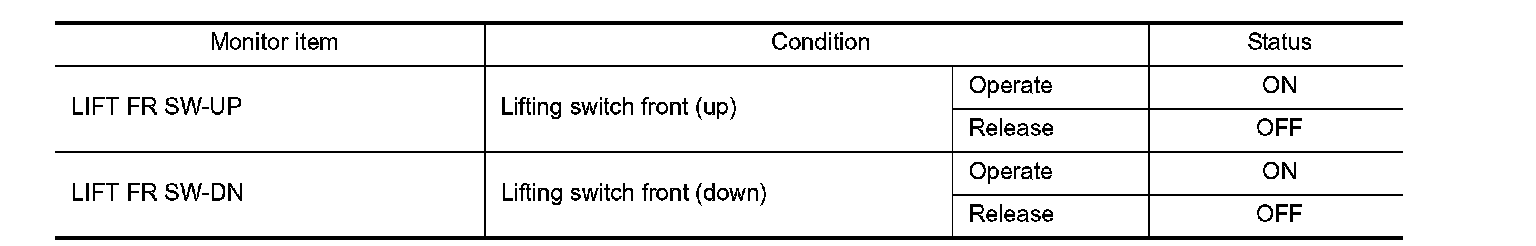 2. Select "LIFT FR SW-UP", "LIFT FR SW-DN" in the "Data monitor" mode using CONSULT-III.