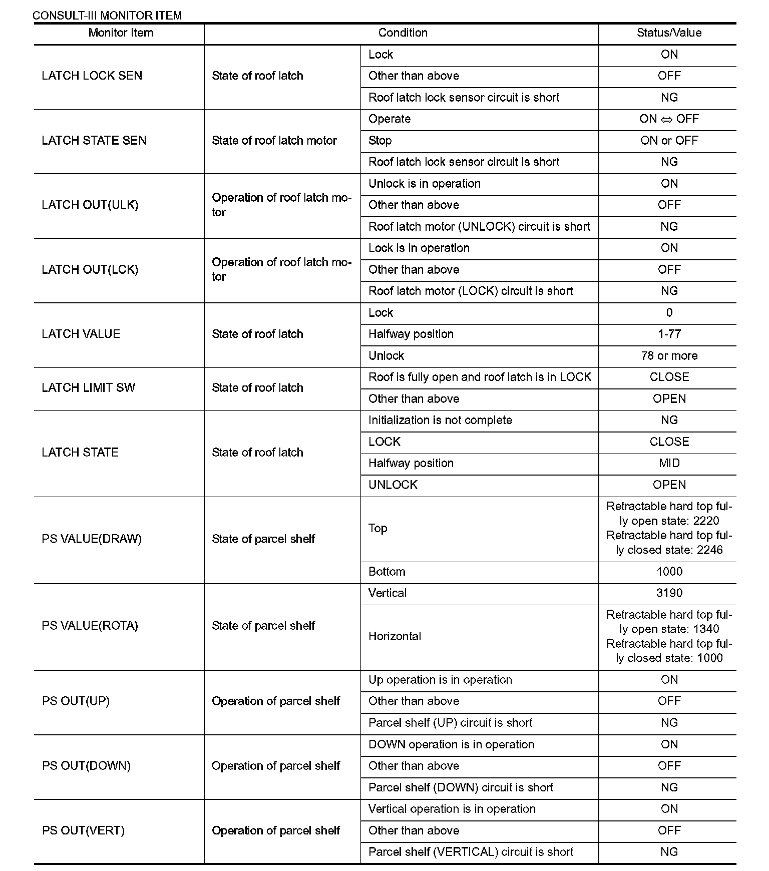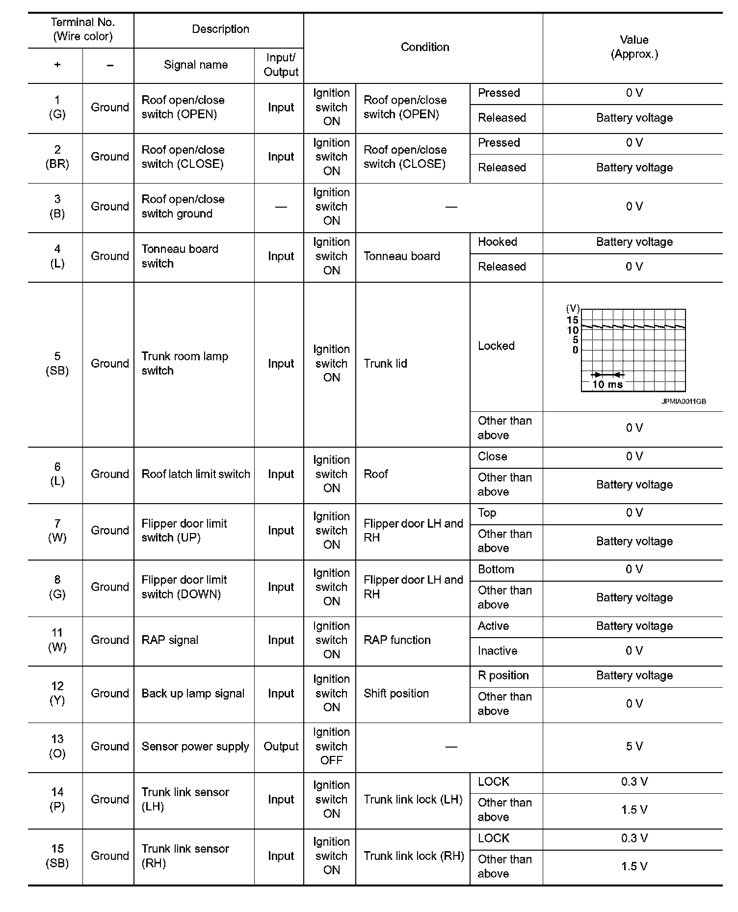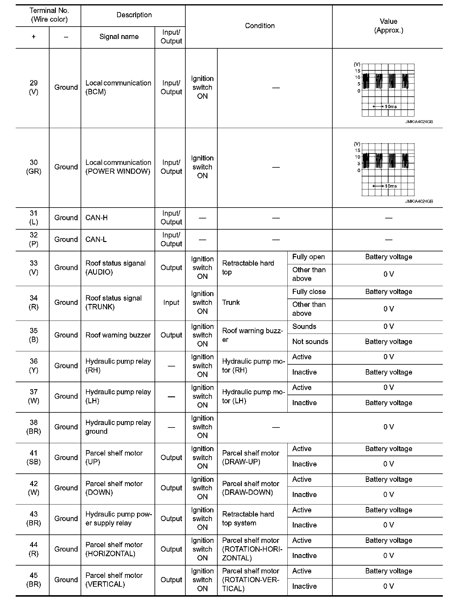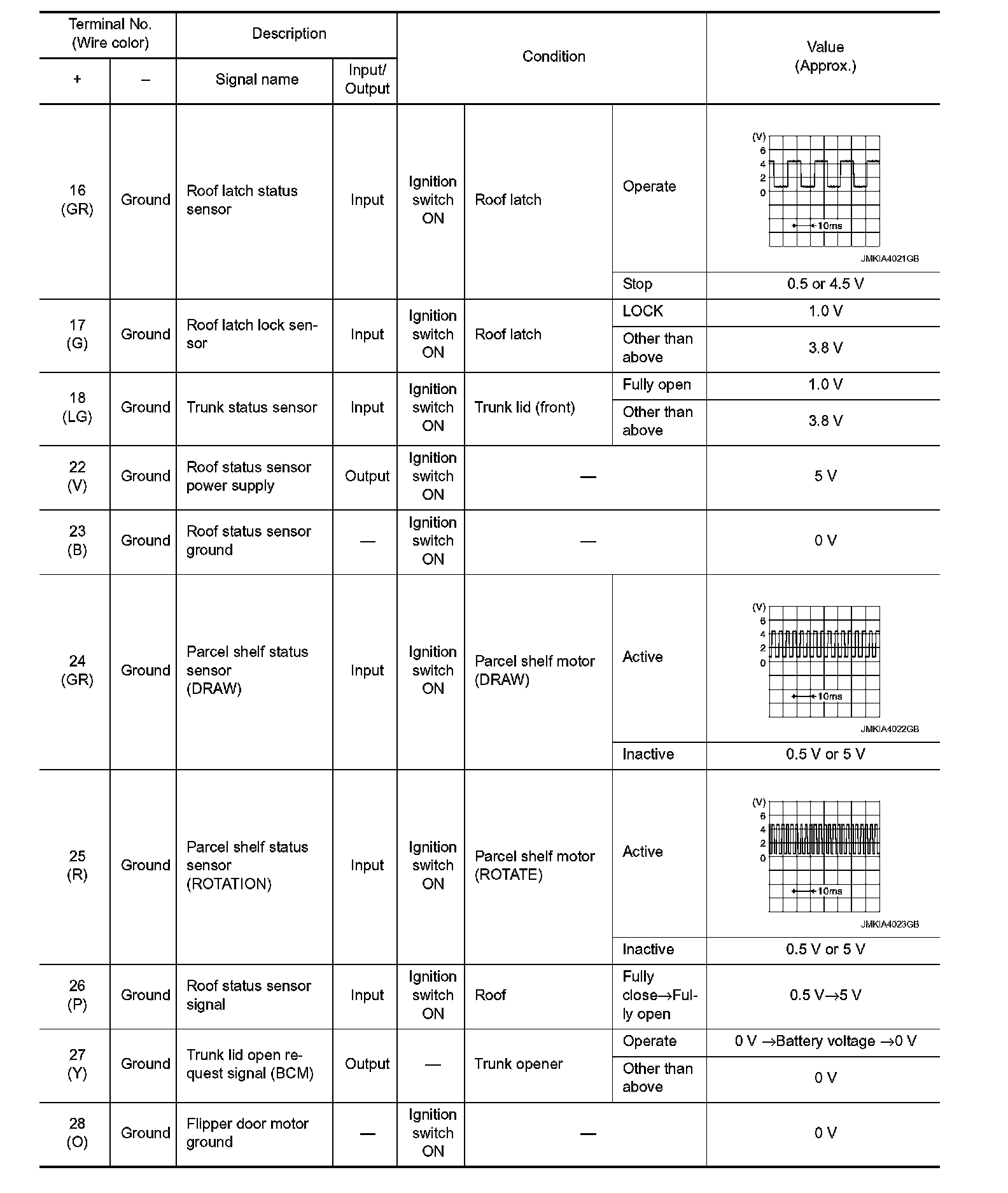 Pinout Values and Diagnostic Parameters