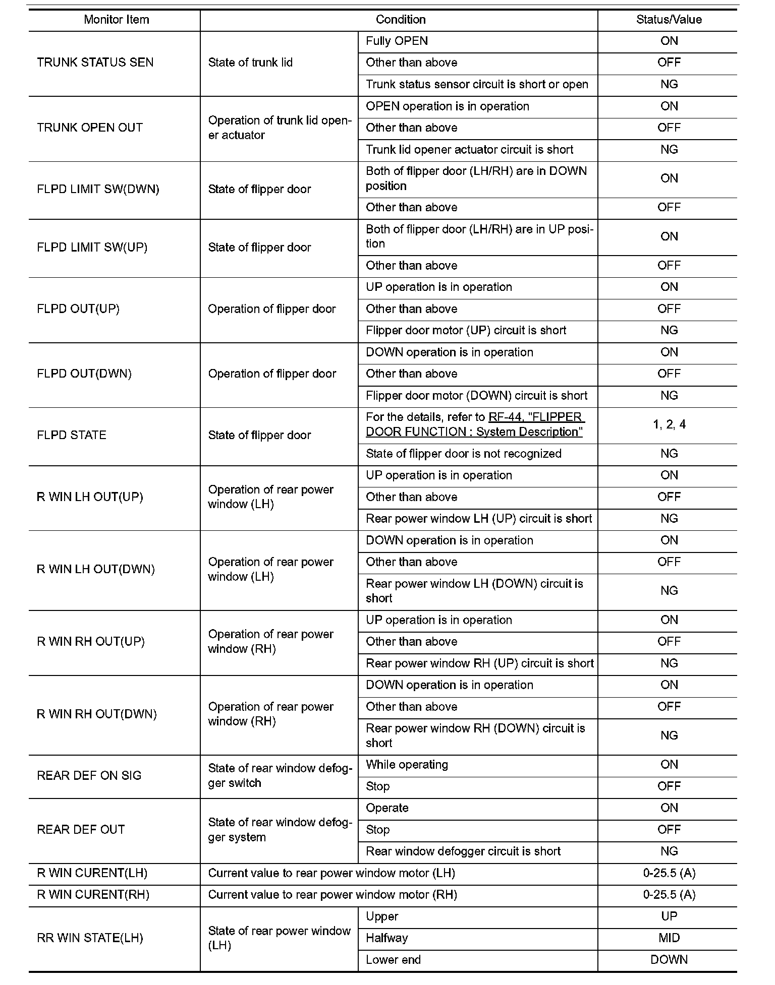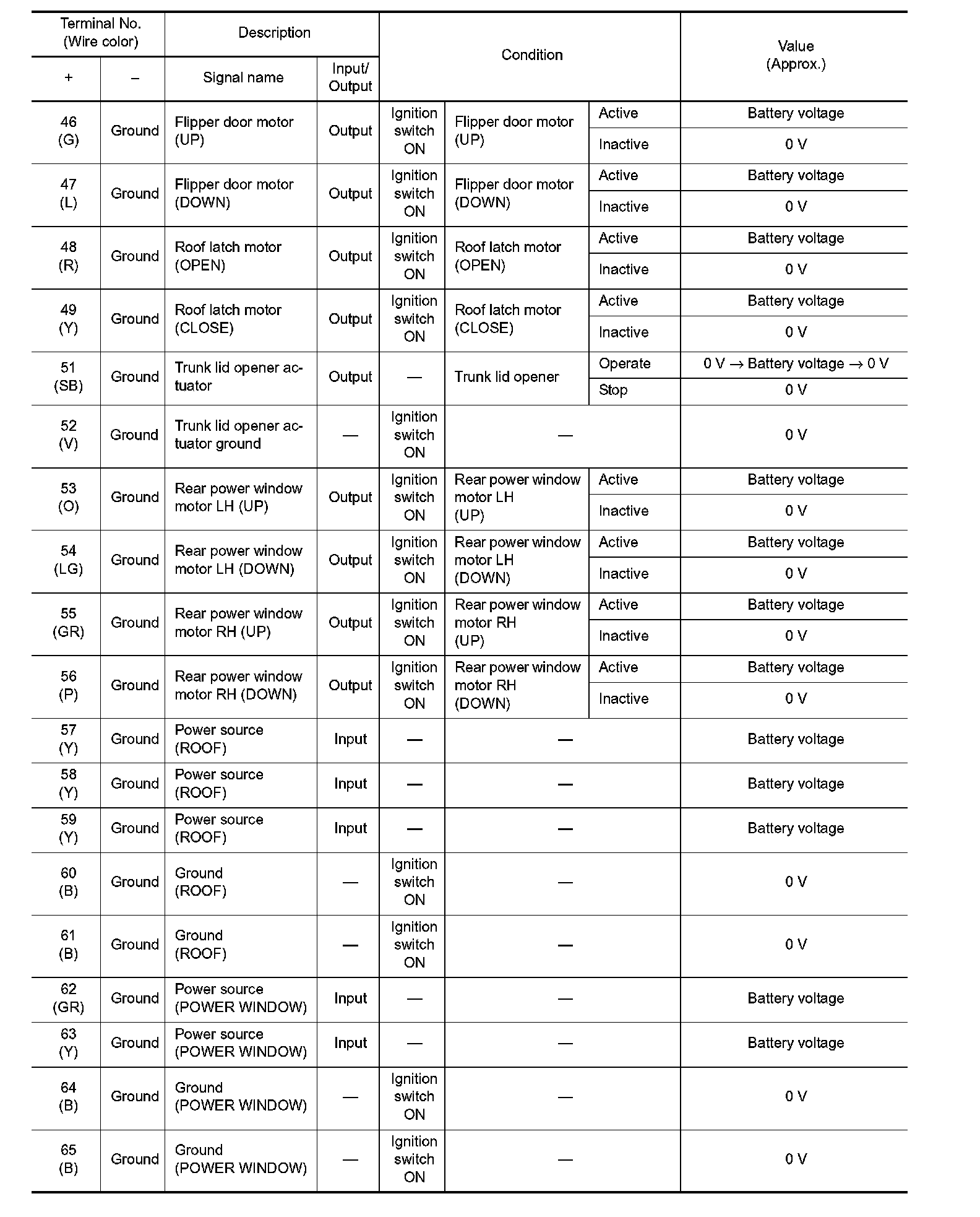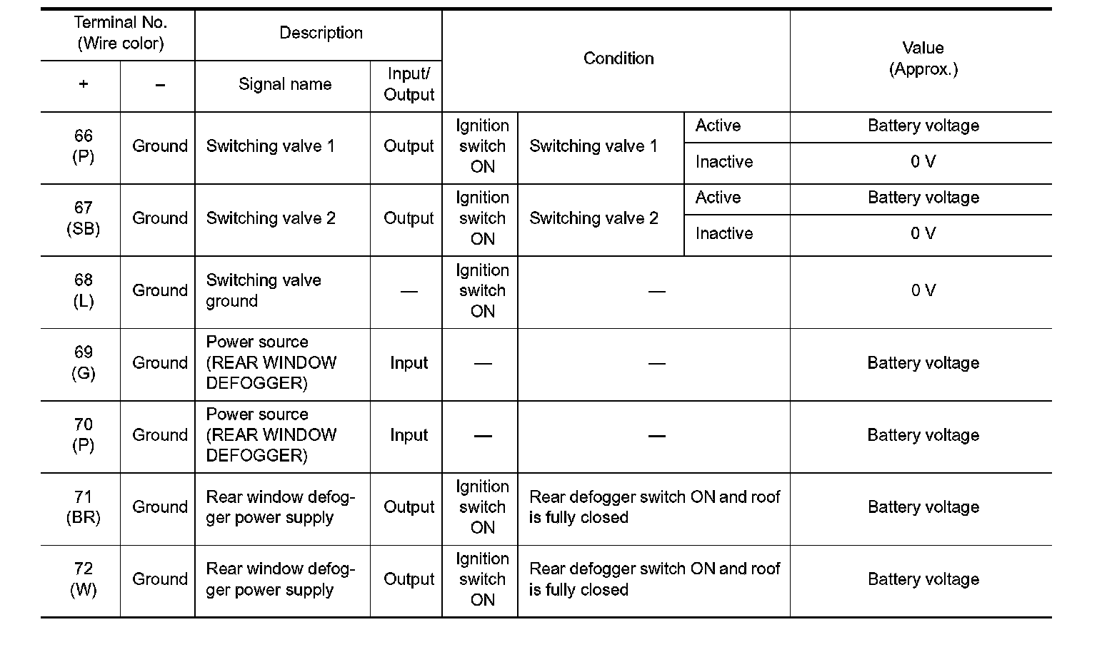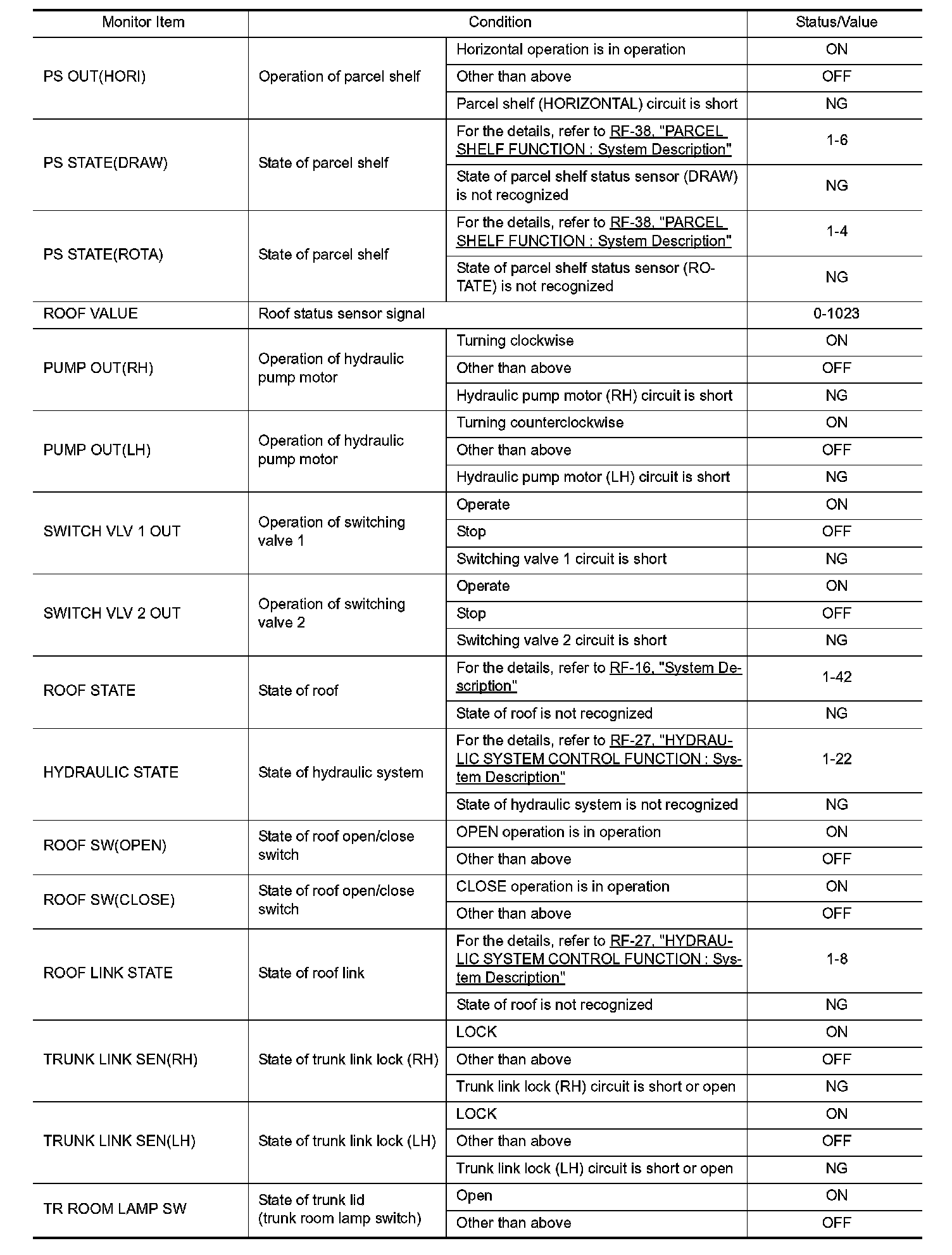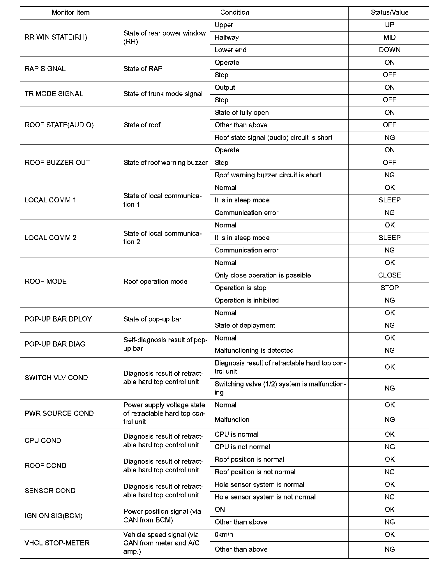 Pinout Values and Diagnostic Parameters