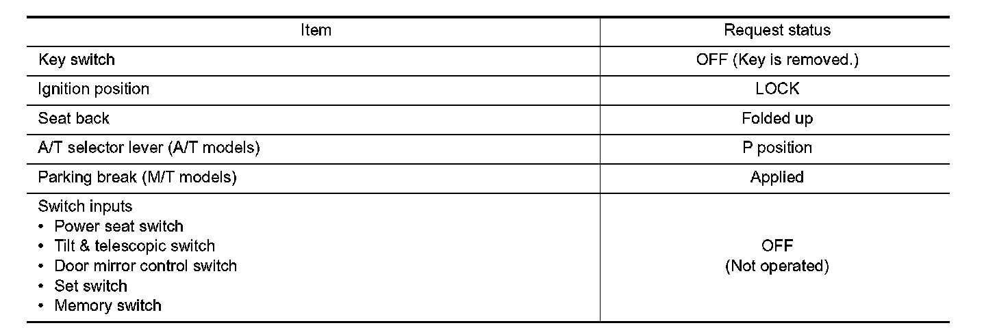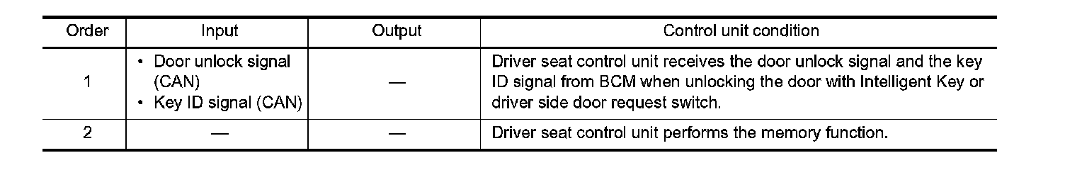 When unlocking doors by using Intelligent Key or driver side door request switch, the system performs memory operation.